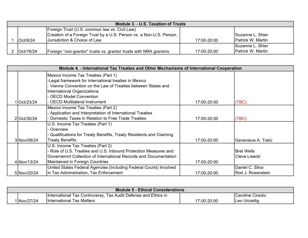 Programa Ejecutivo de Tributación Internacional: ITAM y University of San Diego School of Law